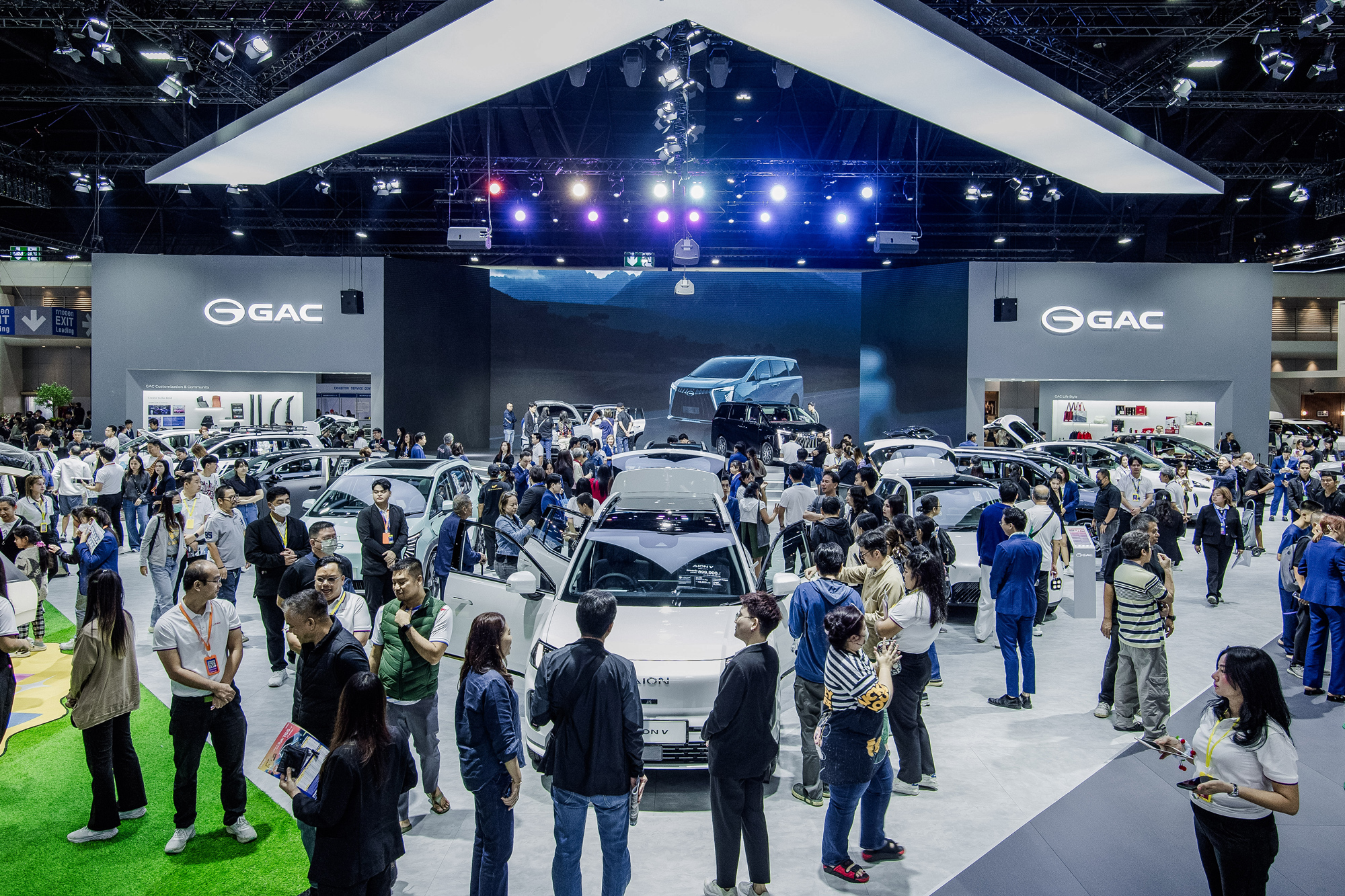 - GAC HYPTEC HT: ยนตรกรรมเอสยูวีไฟฟ้าที่สะท้อนความหรูหราผ่านดีไซน์อันเป็นเอกลักษณ์ มอบประสบการณ์การขับขี่ที่เหนือกว่าด้วยเทคโนโลยีขั้นสูงและฟังก์ชันอำนวยความสะดวกระดับเฟิร์สคลาส พร้อมรองรับการชาร์จเร็ว 280 kW และวิ่งได้ไกลสุด 620 กิโลเมตร (NEDC) โดยภายในงานได้มีการเปิดตัวสีใหม่ล่าสุด "Moonstone Gray" ที่เข้ามาเติมเต็มความสมบูรณ์แบบให้ลงตัวยิ่งขึ้น